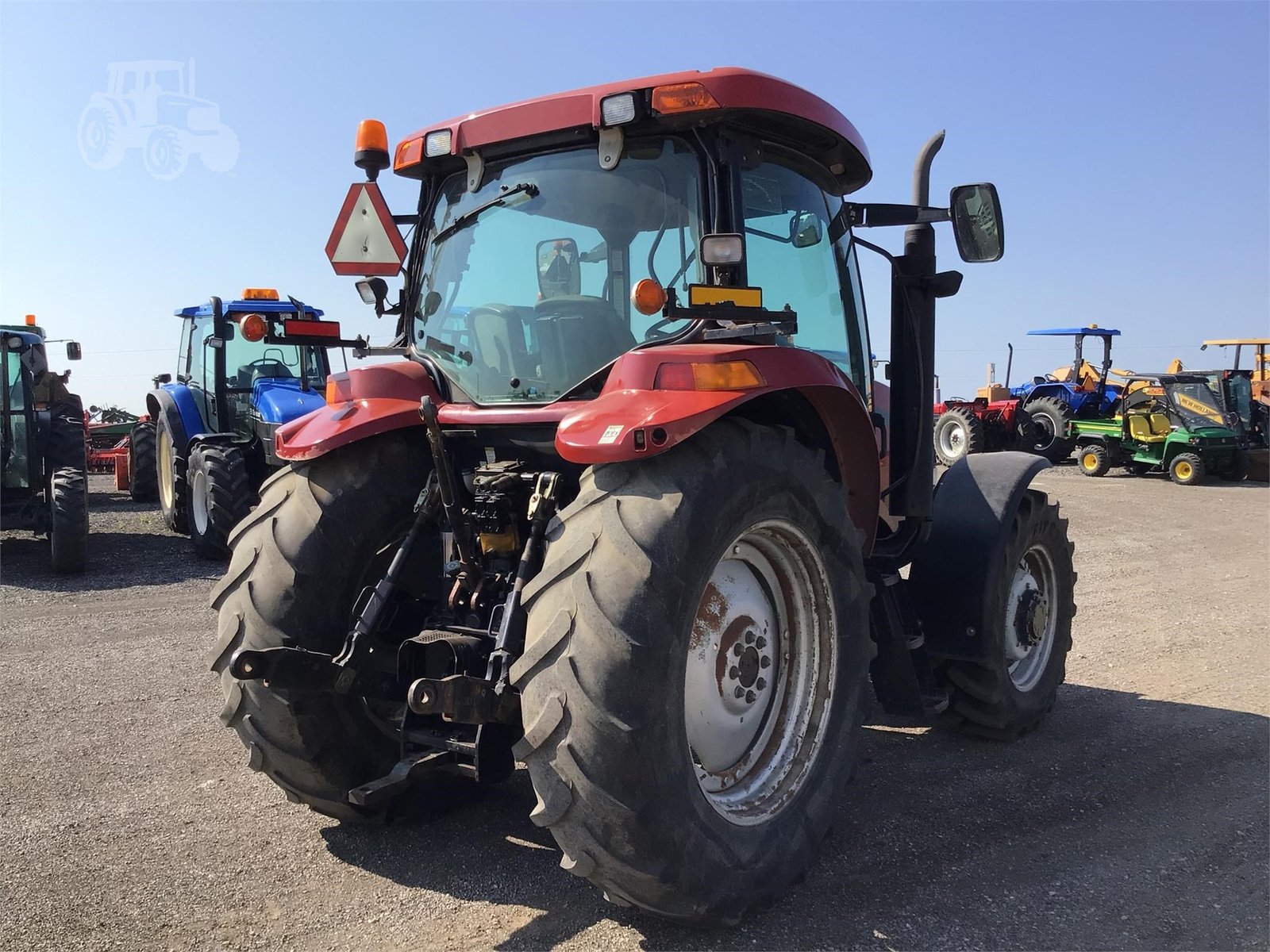 2005 Case IH MXU125 4WD with 6918 hours. Cab/Heat/Air, 125 engine HP / 105 PTO HP with a 16 speed partial power shift transmission. 16 forward gears and 16 reverse. 3 point hitch with fender controls, 540 rear PTO & 3 rear hydraulic remotes. 460/85R38 rear tires & 380/85R28 front tires. Runs well.